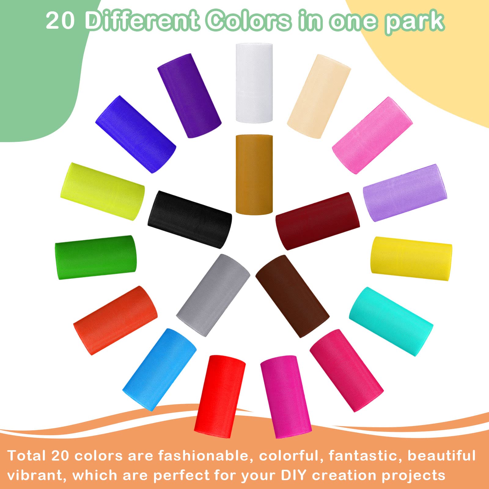 - Sufficient quantity: you will receive 20 rolls of rainbow tulle fabrics, each roll has a distinct color, the large number of quantity is enough for you to use and replace in daily life, satisfying your various DIY craft requirements, creating a romantic atmosphere for you