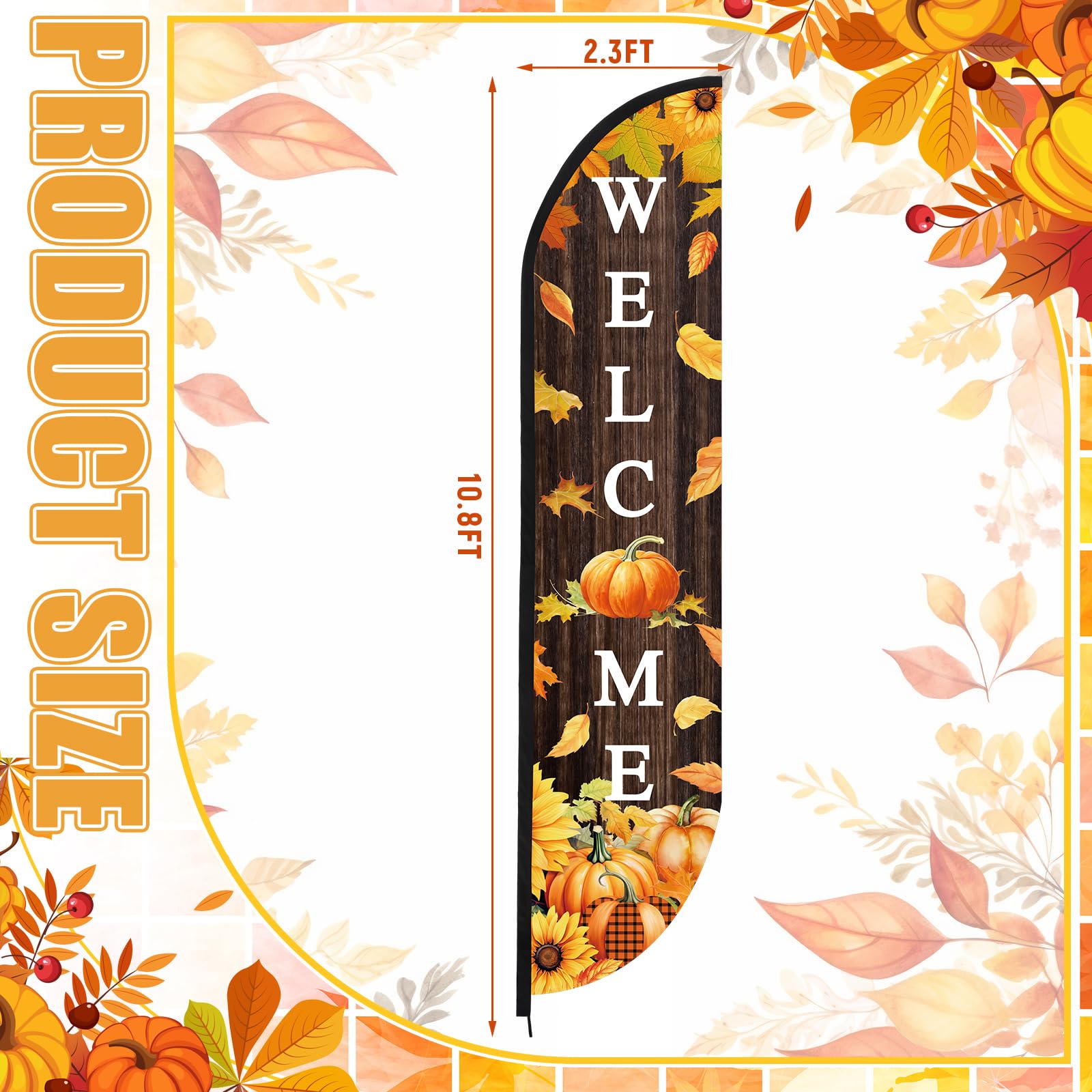 - Suitable Autumn Party Decor: Please note, the pole is not included.embrace the season with our fall feather wind banner flag for outside, sized at 128 x 28 inches/ 10.7ft x 2.3ft, This vibrant yellow and black autumn swooped flag sets the ideal backdrop for your autumn party; Attention: the fall flag is printed on one side, not on both sides