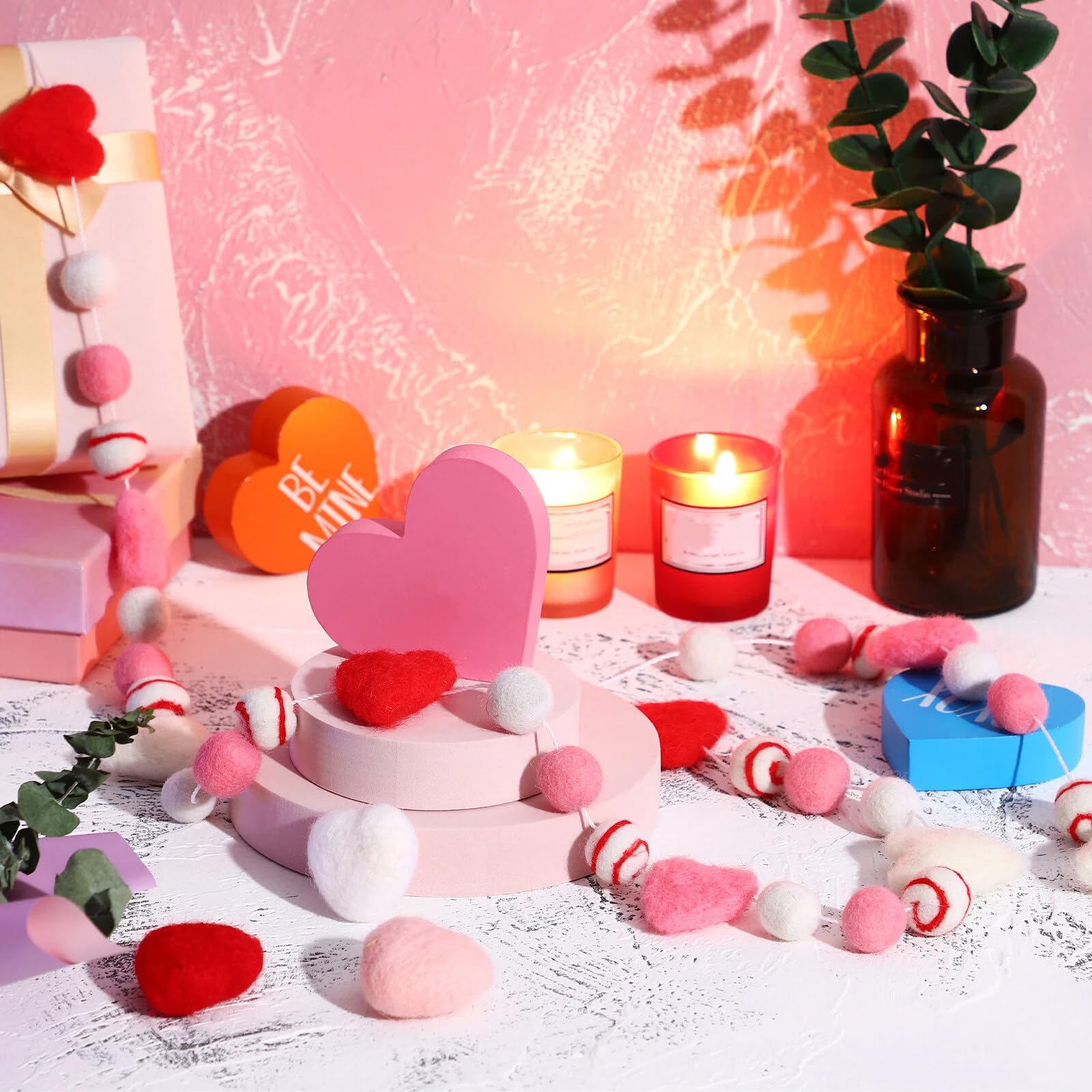 - Sweet Pom Pom Garland: comes with one pack of 10ft Valentine sweet felt garland, which includes 12 felt hearts and 38 felt balls, featuring red, pink and white classic Valentine colors; They are committed to generate a warm and romantic atmosphere on Valentine's Day